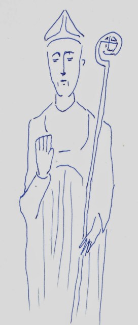 This dude is St. Germain, a bishop of Paris, who was known for his love of the poor. His monks were so afraid that he’d give everything away that they rebelled against him. He died in 576. For the next 900 years his relics were carried in procession through the streets of Paris. This is a sketch of a wooden statue of his eminence in the church that’s named for him.