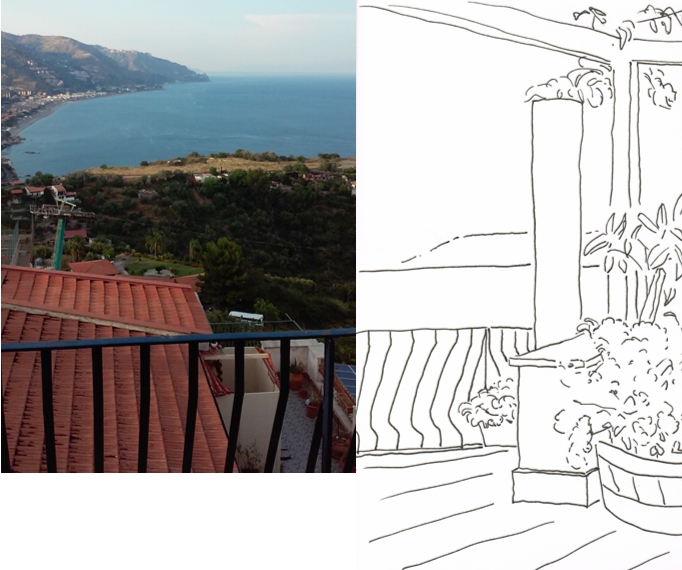 It’s always a good idea to have a sketchbook handy in a place like Taormina. I’m a sucker for the Moleskine 5 x 8.5″ (13 x 21 cm) plain cahier journals – 80 pages of unlined potential. Rumor has it they were used by the likes of Van Gogh, Picasso, and Hemingway. Pretty decent company. Also, they’re designed in Italy.