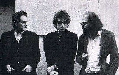 | (l-r) Michael McClure, Bob Dylan, Allen Ginsberg |
