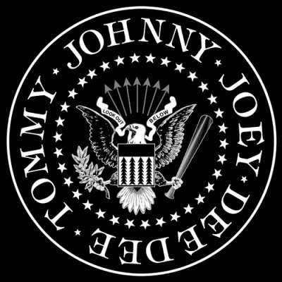 The Ramones logo was designed by NYC artist Arturo Vega, the band’s friend and lighting director, who was inspired by a trip to Washington DC to create a logo that depicts the boys from Queens as an All-American band. The original design had “look out below” in the scroll. It was later changed to “Hey. Ho. Let’s Go.” Joey, Johnny, DeeDee, and Arturo Vega are all dead now but the Ramones will live forever.