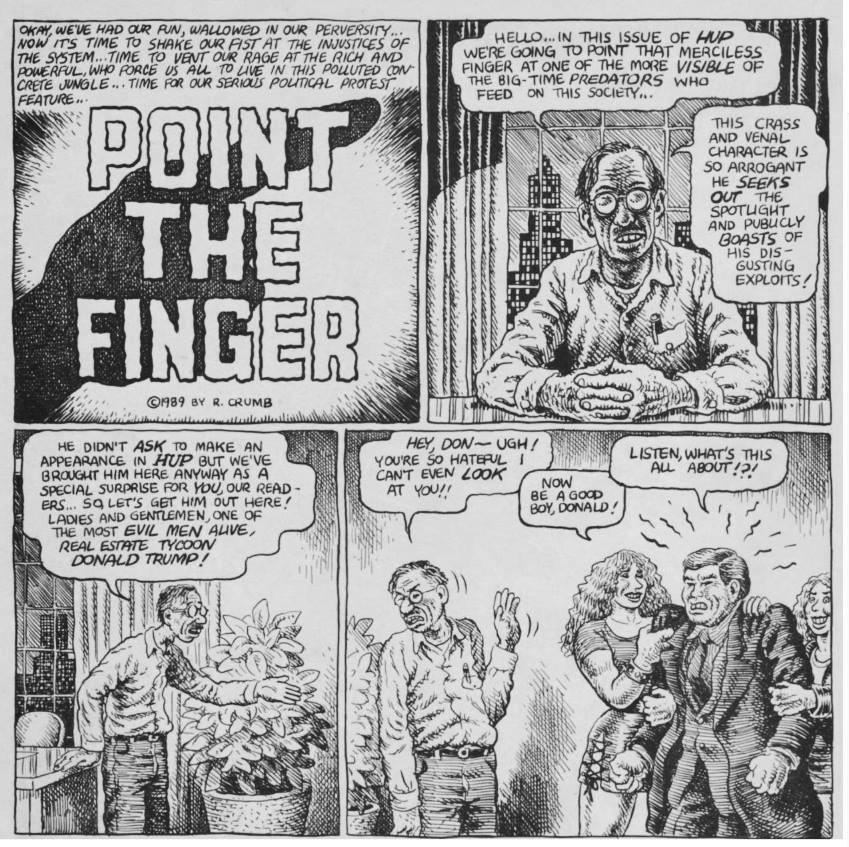 Toyota offered Crumb $100,000 to use his Keep on Truckin’ work in their ad campaign but he turned them down. His work epitomizes a worldview that rejects materialism in favor of natural and spiritual values. He is a man with a keen eye for bullshit, as evidenced by this strip from 28 years ago.