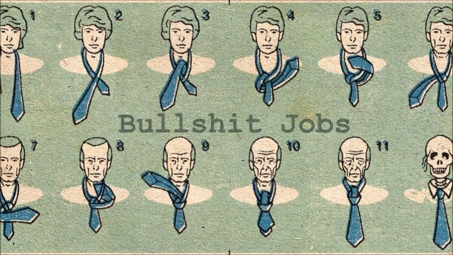 In [anthropologist David] Graeber’s analysis, innumerable people spend their entire working lives doing jobs they consider to be pointless, jobs like telemarketer, HR manager, social media strategist, PR advisor, and a whole host of administrative positions at hospitals, universities, and government offices. “Bullshit jobs,” Graeber calls them. They’re the jobs that even the people doing them admit are, in essence, superfluous. In a survey of 12,000 professionals by the Harvard Business Review, half said they felt their job had no “meaning and significance,” and an equal number were unable to relate to their company’s mission. Another recent poll revealed that as many as 37% of British workers think they have a bullshit job. By no means are all these new service sector jobs pointless – far from it. Look at healthcare, education, fire services, and the police and you’ll find lots of people who go home every day knowing, despite their modest paychecks, they’ve made the world a better place. “It’s as if they’re being told,” Graeber writes, “You get to have real jobs! And on top of that you have the nerve to also expect middle-class pensions and health care?”
