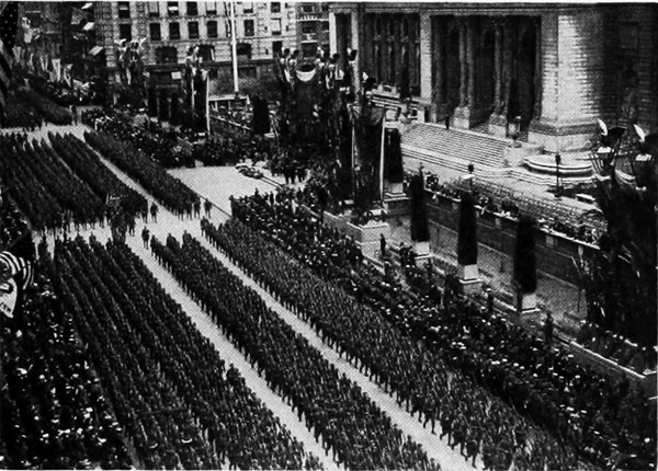 A.M. next morning and at 10:00 A.M. we marched out to Fifth Avenue and swept up that thorofare to the acclaim of a million throats. No greeting could have been more sincere, no welcome more impressive, and this, our last hike as Company B, was a march of glory.