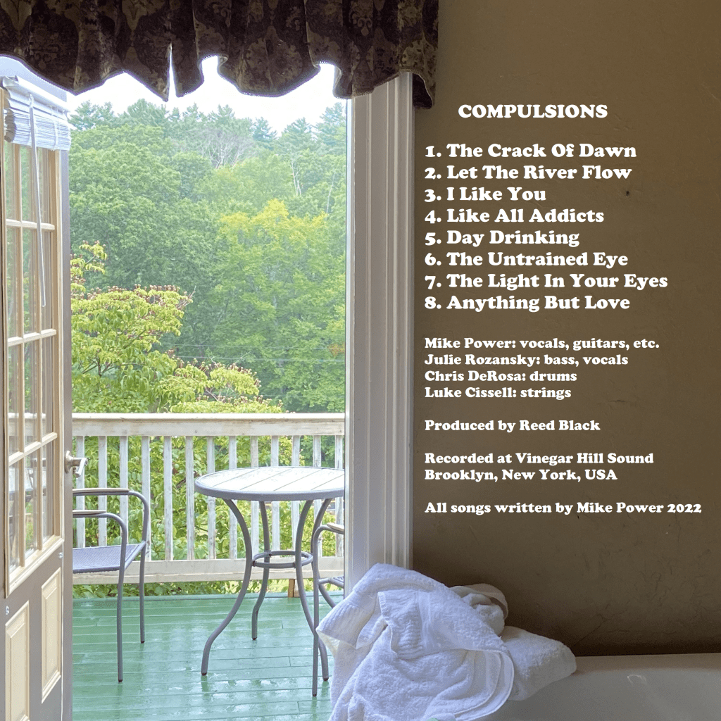 There are things we do because we want to do them Others because we feel an obligation And then there are things we do without knowing why we do them, because we feel compelled. There is an article of faith in schools of philosophy and spirituality that says the path to freedom and enlightenment comes from non-attachment, that it is through conquering our impulses and detaching ourselves from desire that we become our ultimate selves. But I say fuck that. I prefer desire to enlightenment. I want to love passionately until the flame goes out and, when it does, I want to go with it. So I wrote some songs on the subject and named the collection Compulsions. On March 25th of this year, I rented a studio in Brooklyn and ran through a bunch of songs with a bassist named Julie Rozansky. Four days later I ran through the same batch with the drummer Chris DeRosa. The next month, the three of us rehearsed the songs together for the only time before heading into the recording studio in May and knocking them out in a few hours. Over the next few months - between bouts of Covid, weddings, and vacations - I went back into the studio to overdub vocals, guitars, piano, and anything else I could think of to flesh out the original arrangements. It was my good luck to find four people who helped me mold the rough clay of my songs into something beautiful. In addition to the aforementioned rhythm section, the stringmeister, Luke Cissell, arranged and played the violins and other stringed instruments, while the wizard of the wavelengths, Reed Black, worked his magic as producer. Over the next 8 days I will be posting the individual tracks, with some notes on each. I hope you are able to find a little time over the coming days to give these songs a listen. The music is available wherever you get your fix: https://linktr.ee/mikepowernyc