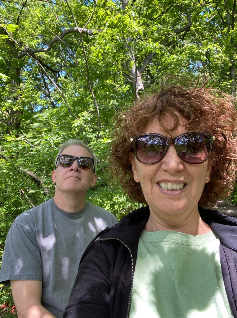 Here are two pictures of me with the love of my life. One is the first picture of us, snapped surreptitiously by a friend in the Fall of 1980. The other is the most recent of us, a selfie in Central Park from two weeks ago.