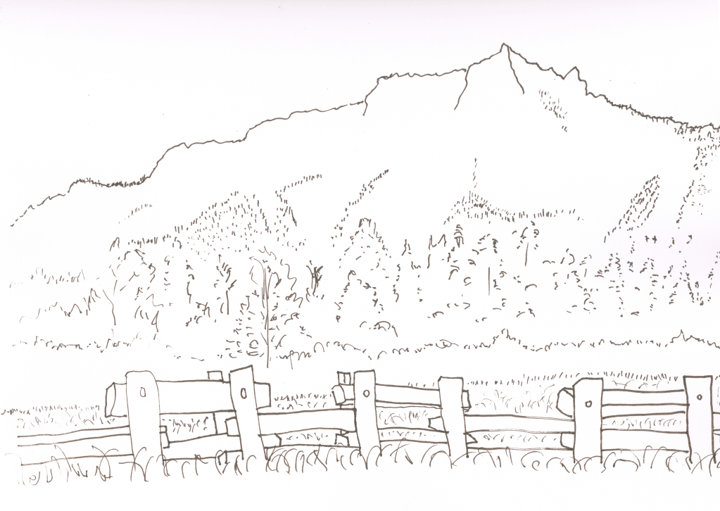 It was incredibly quiet there. Almost deafening in its silence. And dark enough to see an incredible number of stars at night. It was so relaxing that I was able to spend some time training my sketching eye through the windows of the cabin and out to the trees, mountains, and lakes.